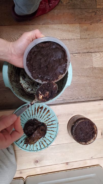 これは、2024年の2月に三岡さんの味噌づくりで造った豆味噌です。真っ黒になりました。